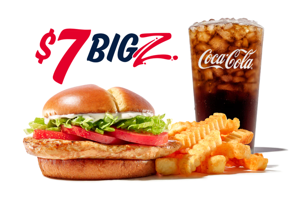 Marinated Grilled Chicken Fillet, lettuce, tomatoes, and Ranch on a toasted potato bun. Served with Crinkle Fries and Small Drink.