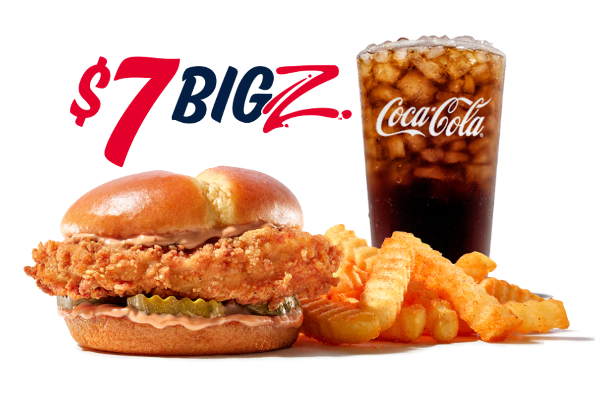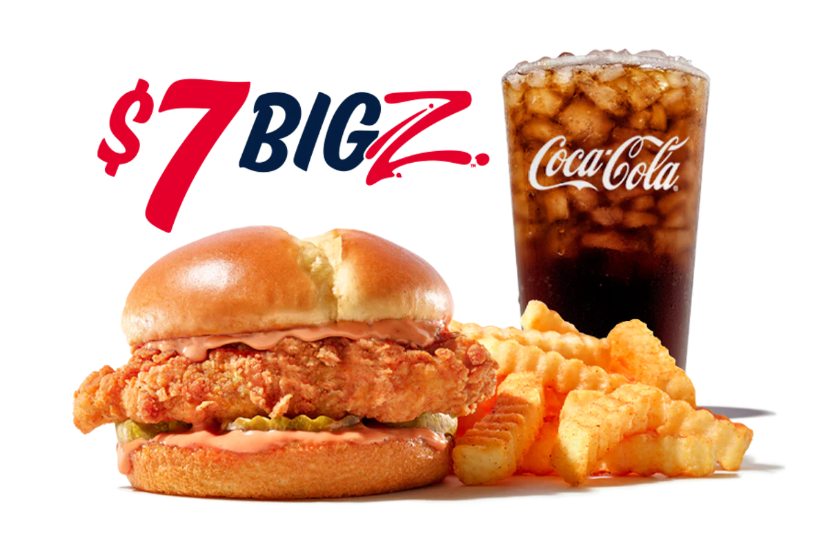 Hand-breaded Chicken Fillet, dill pickles, and Spicy Zax Sauce® on a toasted potato bun. Served with Crinkle Fries and Small Drink.